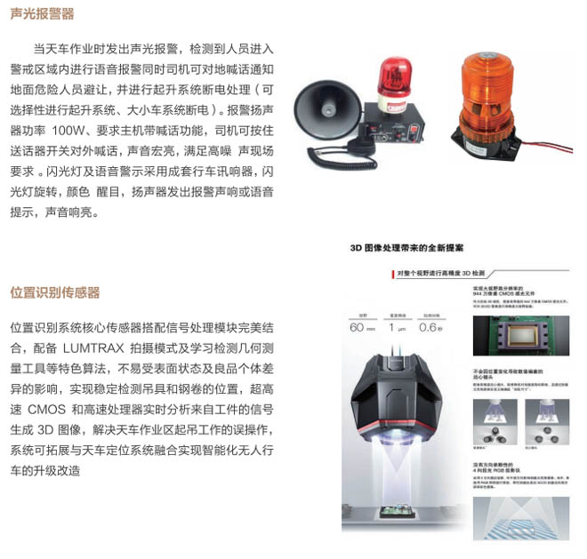 5、位置識(shí)別系統(tǒng):采用定位及位置識(shí)別最新技術(shù),通過圖像識(shí)別傳感器,識(shí)別鋼卷和吊具的位置,進(jìn)行計(jì)算和分析判斷吊具與鋼卷具備吊掛和起吊條件,進(jìn)行語音提示,系統(tǒng)具有自動(dòng)識(shí)別跟蹤鋼卷與吊具的距離,操作工實(shí)時(shí)掌握清晰的位置及畫面信息,準(zhǔn)確無誤的操作,與天車定位系統(tǒng)拓展能達(dá)到自動(dòng)起吊,最終實(shí)現(xiàn)智能化、無人化行車的升級改造。該系統(tǒng)能極大的減少操作人員的誤操作,給生產(chǎn)及安全提供有力保障,提高生產(chǎn)效率及設(shè)備安全性。